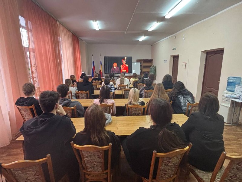 9 декабря 2025 года студенты техникума приняли участие в дистанционном формате в открытом Уроке мужества, посвященному 250-летию Донской казачьей гвардии. Урок мужества начался с торжественного приветствия участников мероприятия.